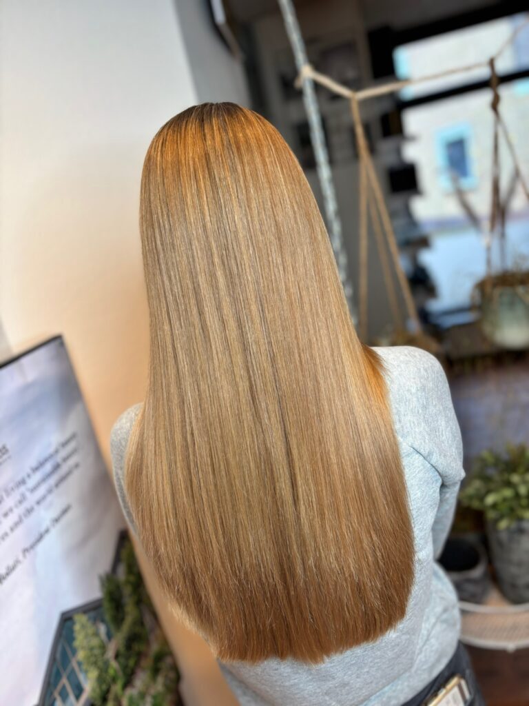 Elke kleurbehandeling vraagt iets van het haar. Daarom werken we zorgvuldig en adviseren we passende verzorging voor thuis. Zo blijft je haar zo sterk en glanzend mogelijk.